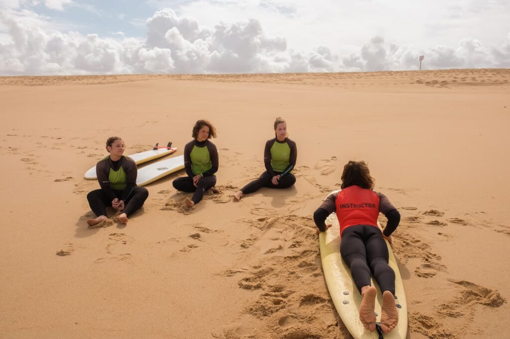We prioritize quality over quantity, focusing on small groups to ensure maximum safety and personalized feedback. Our team of FPS-certified instructors and trained lifeguards combines deep local knowledge with professional sports science to accelerate your learning curve in the most inspiring environment of the Silver Coast.